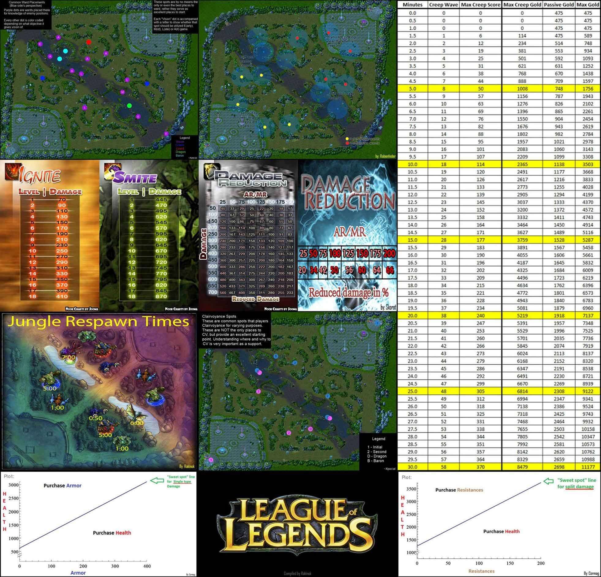 【右侧表格】前30分钟内各时段:第一列为时间,第二列为小兵的波数,第三列为你能够补的最大小兵数,Passive gold为被动增加的金钱,Maxcreep gold为你把每波兵都补到所获得的最大金钱,最后就是你可以获得的最大金钱数。