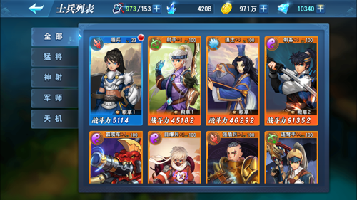 游戏中的士兵是怒破千军的特色之一,是游戏战斗、养成且仅次于武将的主体。