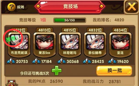 (2)系统一般会推荐一位玩家与你进行PK,按照推荐选择挑战对手的战斗胜率基本在100%。