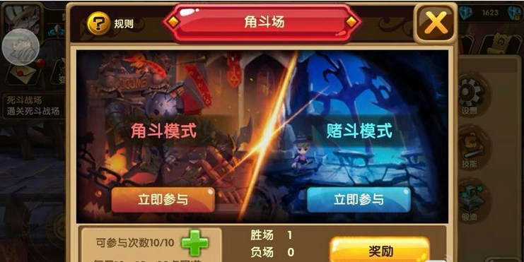 (1)角斗场分为两种模式:角斗模式、赌斗模式(参与者需先支付20000金币押金再进行匹配。若胜利,可以获得双倍押金返还;若失败,失去押金。