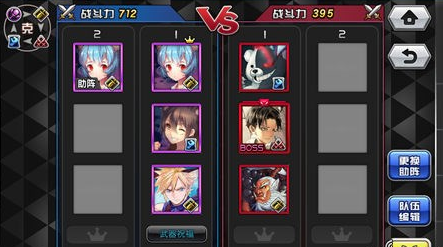 3、 人物头像右下角有职业图标,屏幕左上角有职业相克说明,战斗前要先配置好有利于自己的站位在进行战斗。
