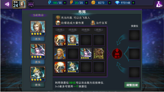 点击更改战术即可更换自己的上阵英雄以及英雄位置。