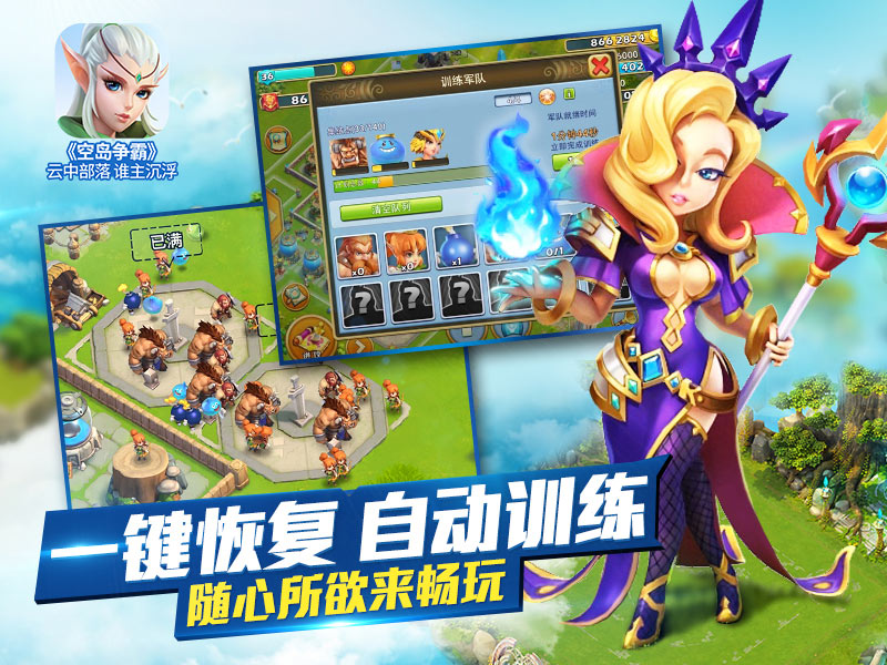 《空岛争霸》支持自动补兵,无需多次手动操作;更有独创的能量球系统,能够一键恢复所有兵力,快速出兵,连续战斗。即时出战,让你随时随地想玩就玩。