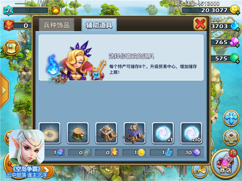 可别小看了这些空岛特产!在《空岛争霸》中,玩家们通过特产资源可以兑换提升空岛部落实力的道具,不仅有兵种饰品,还有防御建筑,都可以让自己的实力更上一层楼。