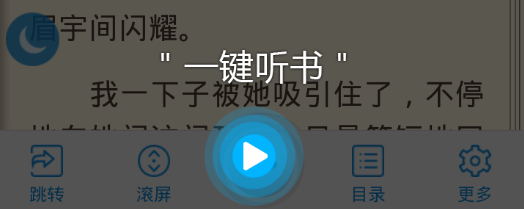 点击菜单可以查看更多丰富功能:一件听书、滚屏、目录、跳转
