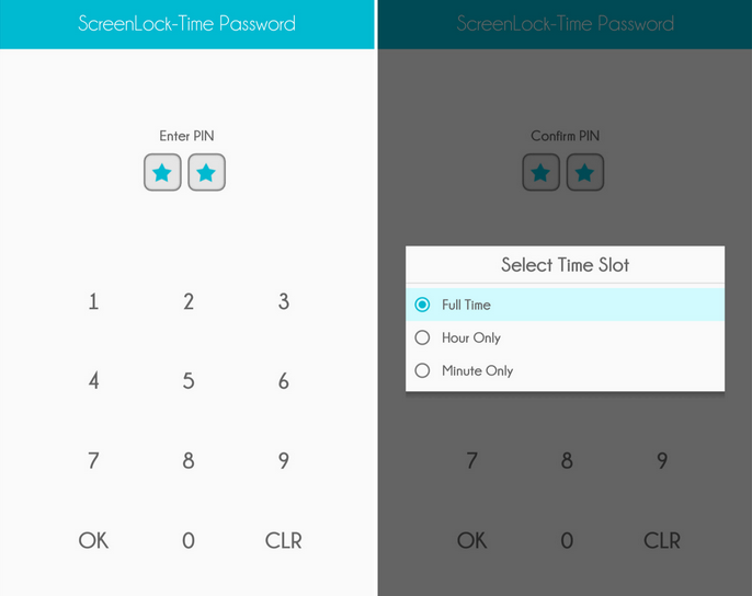 「PIN+Time」则是最复杂的形式,通过这种方式用户的锁屏密码会变为由两位自设的 PIN 密码+时间来组合而成。首先用户需要设定两位固定不变的 PIN 密码,然后又会出现三个选项「Full Time」、「Hour Only」、「Minute Only」,正如字面意思当选择「Full Time」时密码就是「两位 PIN 码」+「时+分」,以此类推。