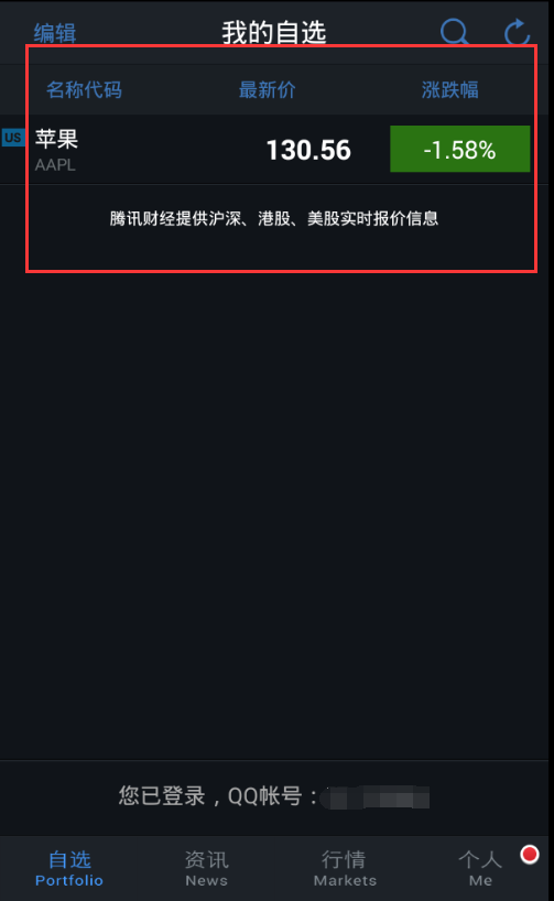 QQ帐号登录,手机,QQ,网页同步查看自选股票