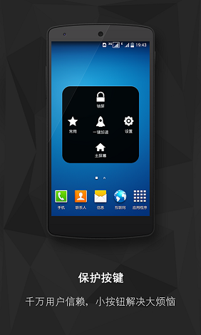 1、完全代理物理按键(锁屏、返回、菜单、音量键,全面帮你延长物理按键使用寿命,需ROOT支持)