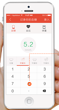 记录所有控糖相关的项目,如血糖、饮食、运动、检查、服药、胰岛素注射情况等,从此以后就好像随身都有以,名专属的24小时健康专家。
