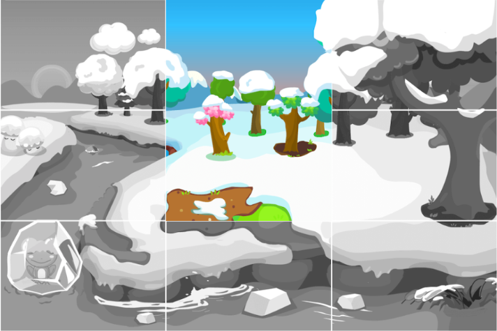 采用拼图的方式,点击即可出现色彩斑斓的画面