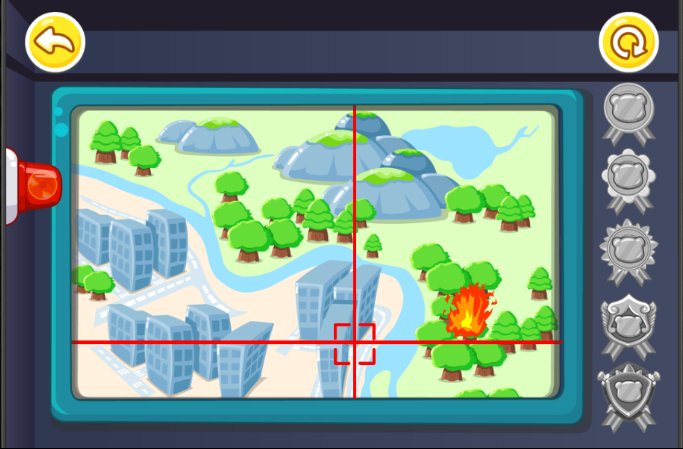 孩子需要根据着火地点选择正确的灭火设备参与到灭火救援行动中,通过点击、滑动等操作来扑灭大火,拯救危机的小动物们。