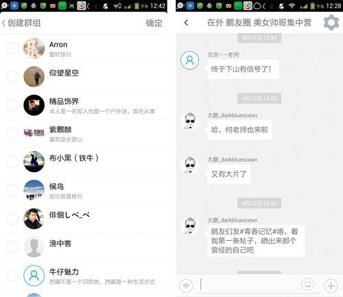 引入了全新的互动模式,可以建立群组聊天,可以与好友进行文字和语音私聊。相信在加入群组聊天这种互动模式之后,户外旅行爱好者们可在此平台上进行更为便捷的社交聊天。