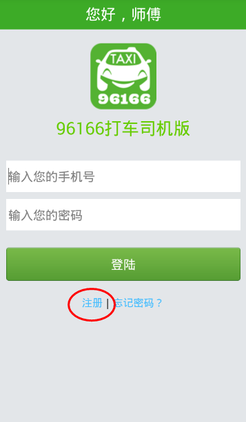 1、在手机上下载安装96199司机版客户端,点击注册按钮