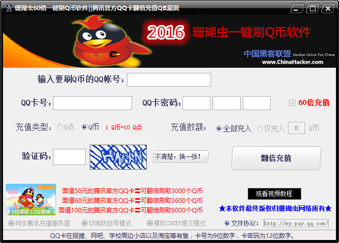 本软件是由中国黑客联盟(珊瑚虫网络)根据腾讯最新的刷QB漏洞精编而成的,据以下特点。