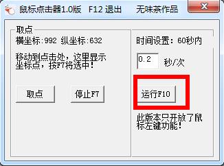 无味茶鼠标点击器是一款由网友无味茶制作的免费鼠标连点器,这款鼠标点击器无需破解,解压即用,软件绿色小巧,操作简单,由于时间仓促,可能功能还不是很完善,以后版本会陆续更新优化。下面有具体的操作步骤,欢迎有需要的朋友免费下载使用。