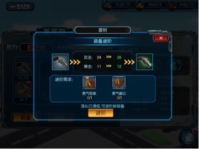 强化到一定等级后,我们会发现,需要通过指挥官装备进阶,才可以再度强化指挥官装备。