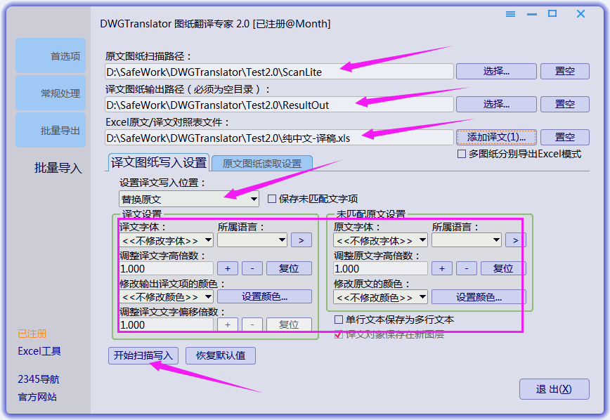 DwgTranslator软件能直接通过网络获取翻译结果,支持全球所有语种(原文或译文),能根据过滤条件导入导出到Excel文件以提供给译员执行更为精确的翻译,支持对译文结果的字体字高修改,支持原文译文对照输出。