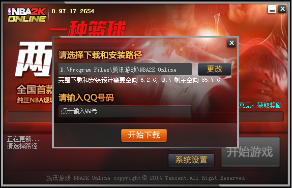 NBA2K Online的微型客户端大小约为1.36G。在您下载的同时可以在下载界面进行设置,调整下载速度以及选择下载方式。如果您勾选了“游戏过程中边玩边下”,那么在您进入游戏之后,大厅的右方会有提示“正在下载完整资料,敬请期待”。您在体验游戏的过程中,即可完成下载。