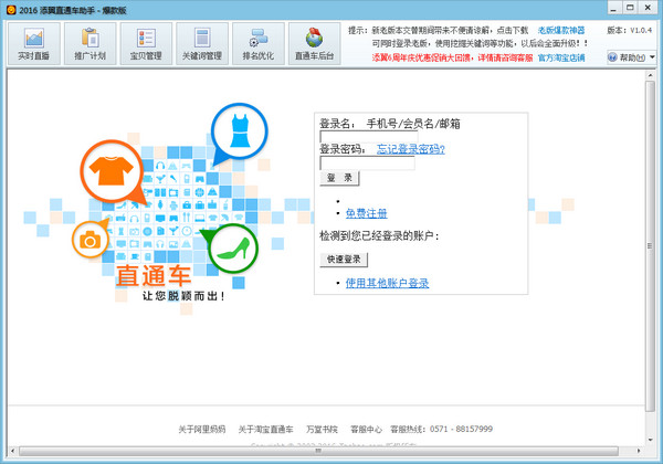 添翼软件,专注淘宝网第三方软件开发,服务广大淘宝掌柜,为您提供最专业,有效的淘宝营销管理软件,旺旺群发,直通车助手,来客问候,宝贝排名优化,店铺分析,店铺流量提升,自动上架助手。专业淘宝辅助软件及工具,助你网店腾飞。阿淘群发添翼直通车助手,添翼新直通车助手,直通车关键词优化,直通车优化。