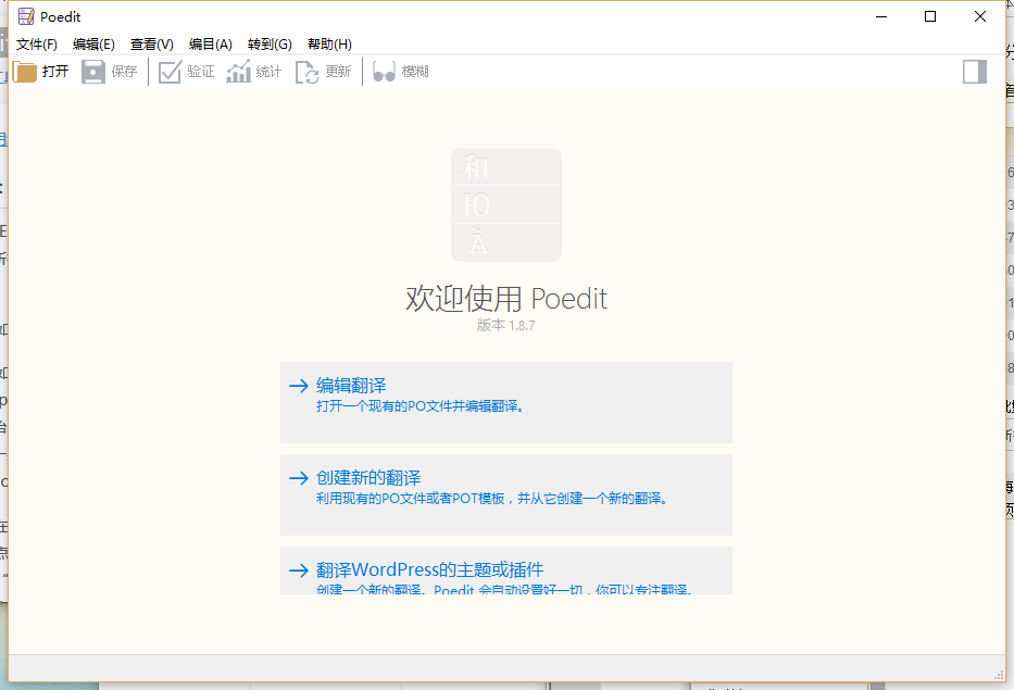 poEdit的是故意如此简洁的重点是你工作的翻译。只有你和翻译,无杂念。
