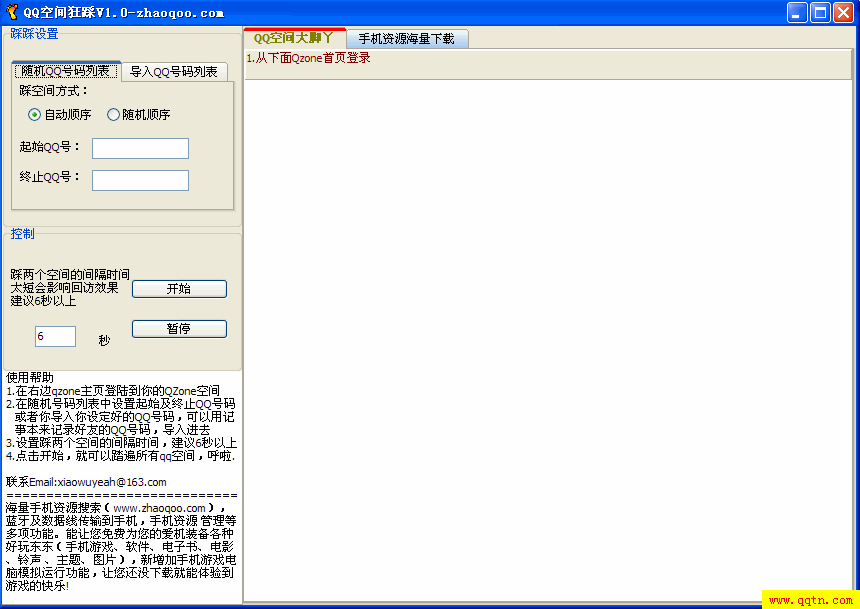 可以按照您的需求进行海量踩别人或者好友的QQ空间,使得别人回访,提高你的空间人气,结识更多朋友!