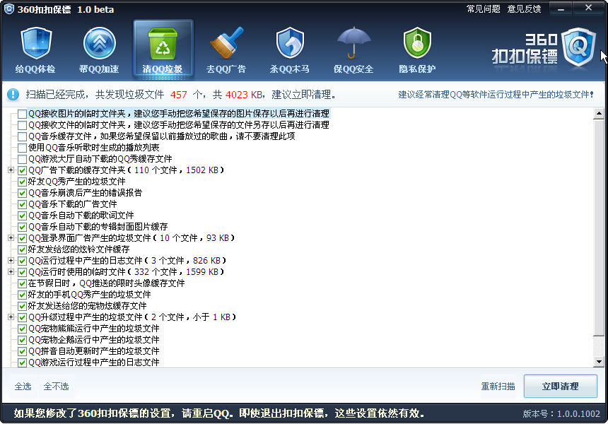 5、清理QQ垃圾(含QQ影音、QQ音乐等QQ周边软件),清除冗余和临时文件;