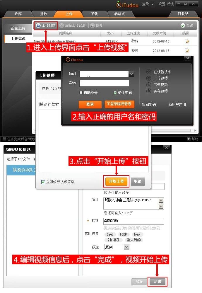 1、进入iTudou客户端之后没进入上传界面点击“上传视频”,选择上传的视频文件