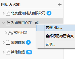 企业群组和个人群组均显示在“团队&群组”下,如下图所示,前两个是我所创建或加入的企业团队,展开可看到团队下的群组。“我的群组”是指我创建的个人群组,右键可对我的群组进行管理;“其他群组”是指我加入的个人群组。