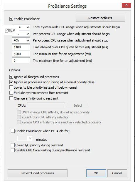 ProBalance -防止由CPU猪引起的滞后和摊位,节能运行的最大性能的同时,有效节约能源,但空闲时,自动化和控制过程和功率谱。Process Lasso 是一款独特的调试级别的系统优化工具,主要功能是动态调整各个进程的优先级并设为合理的优先级类以实现为系统减负的目的,此项特性被 Process Lasso 定义为过载抑制(out-of-control restraint),可有效避免蓝屏、假死、进程停止响应、进程占用 CPU 时间过多等症状。