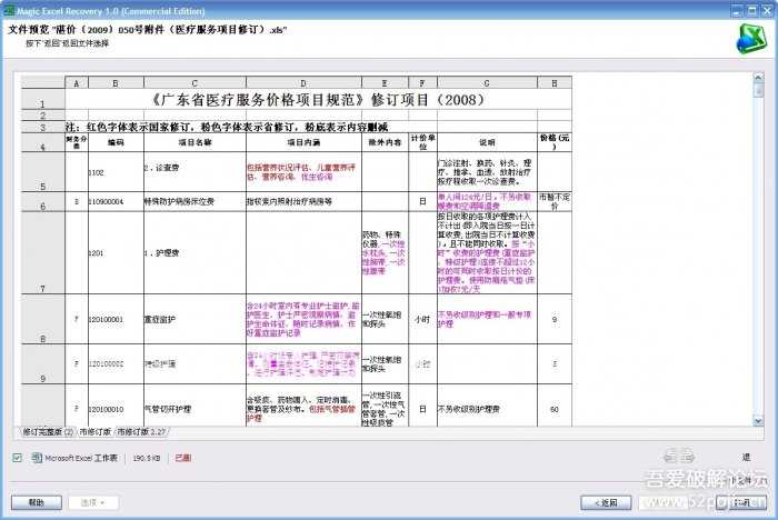 与国内目前唯一的Excel表格恢复软件的比较,差距立现,在 Excelrebuild 2.5扫描到的文件里,源文件的颜色都不见了,文件名无法显示,文件内容也有缺失。