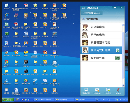 gotomycloud主控端能够远程控制安装过gotomycloud被控端的电脑等设备,拥有对被控端PC进行远程桌面控制,文档传输、远程开机、开机和文件同步等功能。
