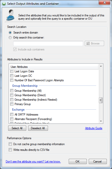 1、在电脑上查询大量的属性、联系人、容器/我们的组,GPOs,打印机,和用户。