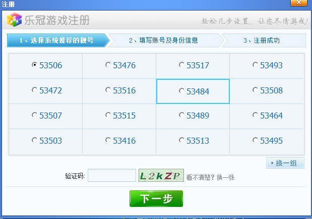 运行软件之后,进入软件登录页面,选择注册帐号,选择系统推荐的靓号。