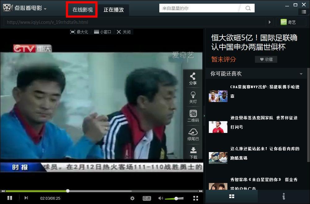 A:播放过程中可点击界面上方“在线影视”切换到在线影视界面继续选片