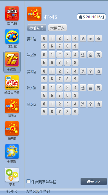 排列5:标准选号、大底导入