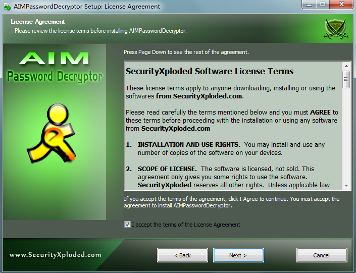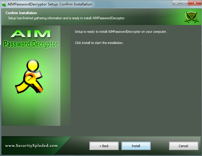 截图1:AIMPasswordDecryptor显示恢复帐户密码的目的(AOL的即时通讯)。