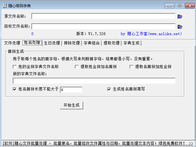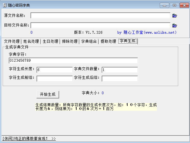 随心密码字典是一款是一款用来生成密码字典的工具,本款随心密码字典绿色无需安装,免费使用,对于字典处理方面具有非常多的实用功能,可以用于破解用字典的工具。