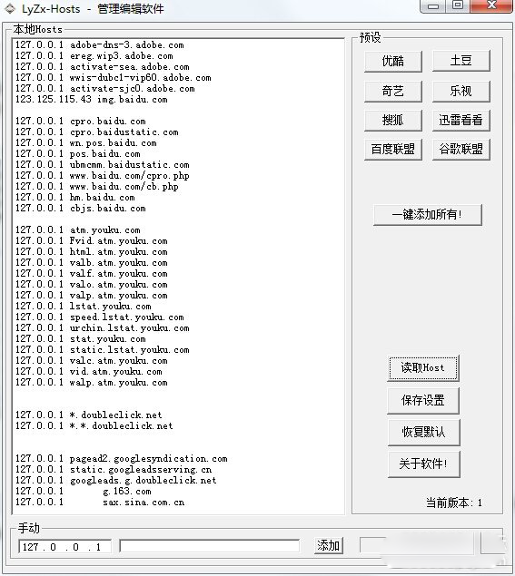 软件名称: LyZx - Host编辑管理