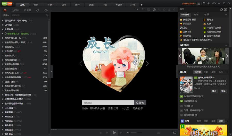 爱奇艺PPS影音延续pps风格,在左上方的logo设计上,将绿色的爱奇艺标志和橙色的PPS标志拼揍在了一起