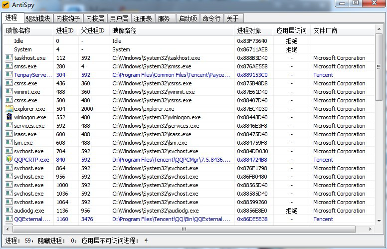 这是一款手工杀毒辅助工具,适用于清除电脑中存在的顽固病毒,在她的帮助下您可以轻而易举的揪出电脑中隐藏至深的病毒和木马,还您一个干净舒适的上网环境。当你遇到顽固的病毒而无法清除时,当主流杀毒软件被禁用时,你该怎么办?不防试试新兴的ark工具AntiSpy。
