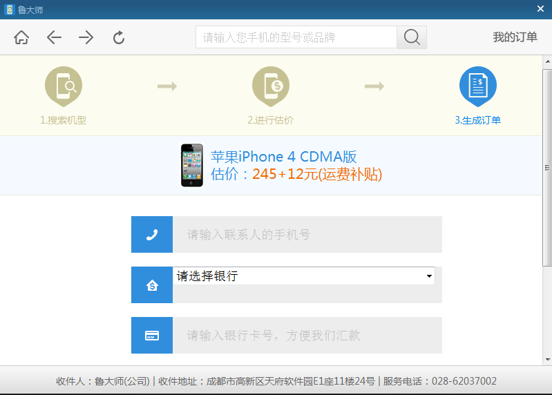 2、二手手机信息完善,进行估价