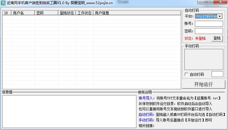 手动打码:成功导入账号后直接点击【开始运行】循环输入验证码即可