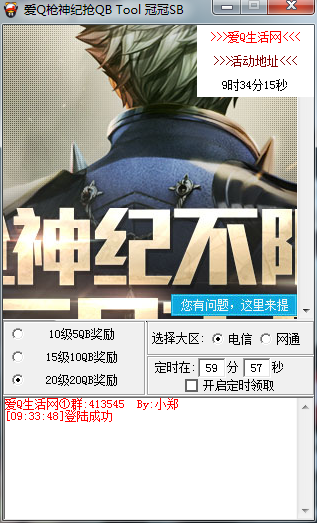 枪神纪活动抢Q币工具是一款用来帮助用户自动定时抢升级Q币的工具,枪神纪不限号公测,千万Q币盛典,升级就能免费领Q币,升级即送Q币、月券、超值礼包!7月18日-8月6日新注册的玩家,当等级到达10级、15级、20级时,即可领取以下3种奖品中的1种;活动期间每天9点刷新Q币、月券,数量有限,先到先得;