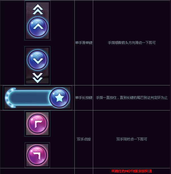 《TOUCH》移动版核心玩法的操作简单易懂,分为点、滑、长按三种。NOTE从屏幕中心出发,向左右方向移动,当NOTE与两边的判定环重合的时候,完成对应的操作即可。