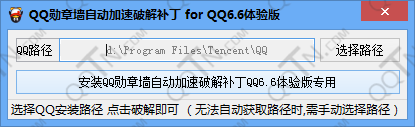 2、打开QQ6.6体验版勋章墙破解补丁,工具会自动获取QQ安装目录,如果无法获取,请手动选择路径