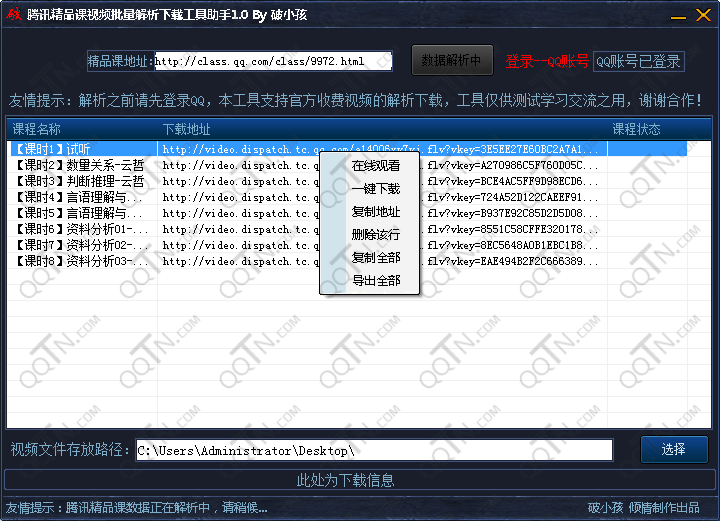 2、支持腾讯精品课所有课程解析,收费视频也可以。