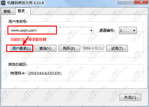 在用户序列号中输入“hsb6du.cn”,点击用户登录