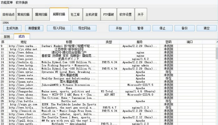 11、熊眼扫描(支持目标扫描,自定义IP段,C段,探测网站,类型,服务,FTP弱口令,端口,支持调节响应速度以及线程速率)