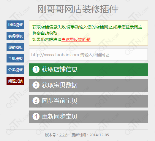 1、输入店铺地址,如果您已经登录淘宝,插件将会自动获取店铺地址,没有的话,请手动输入。