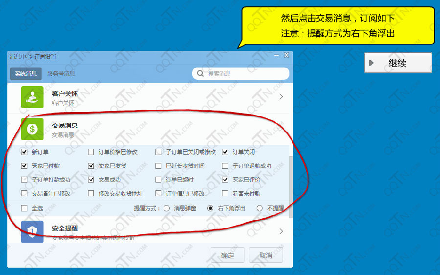 1、在使用卖家助手前必须订阅千牛相关消息,如下图所示,点击千牛设置